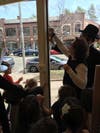 Gan of Greenwich Preschool Mitzvah Club Installs Mazuzah at "By the way" Bakery.