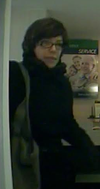 She also has been described as “as a white female, approximately 40 years old; short, weighing about 100 pounds, with dark hair in a pixie cut, wearing sunglasses and a dark peacoat.”