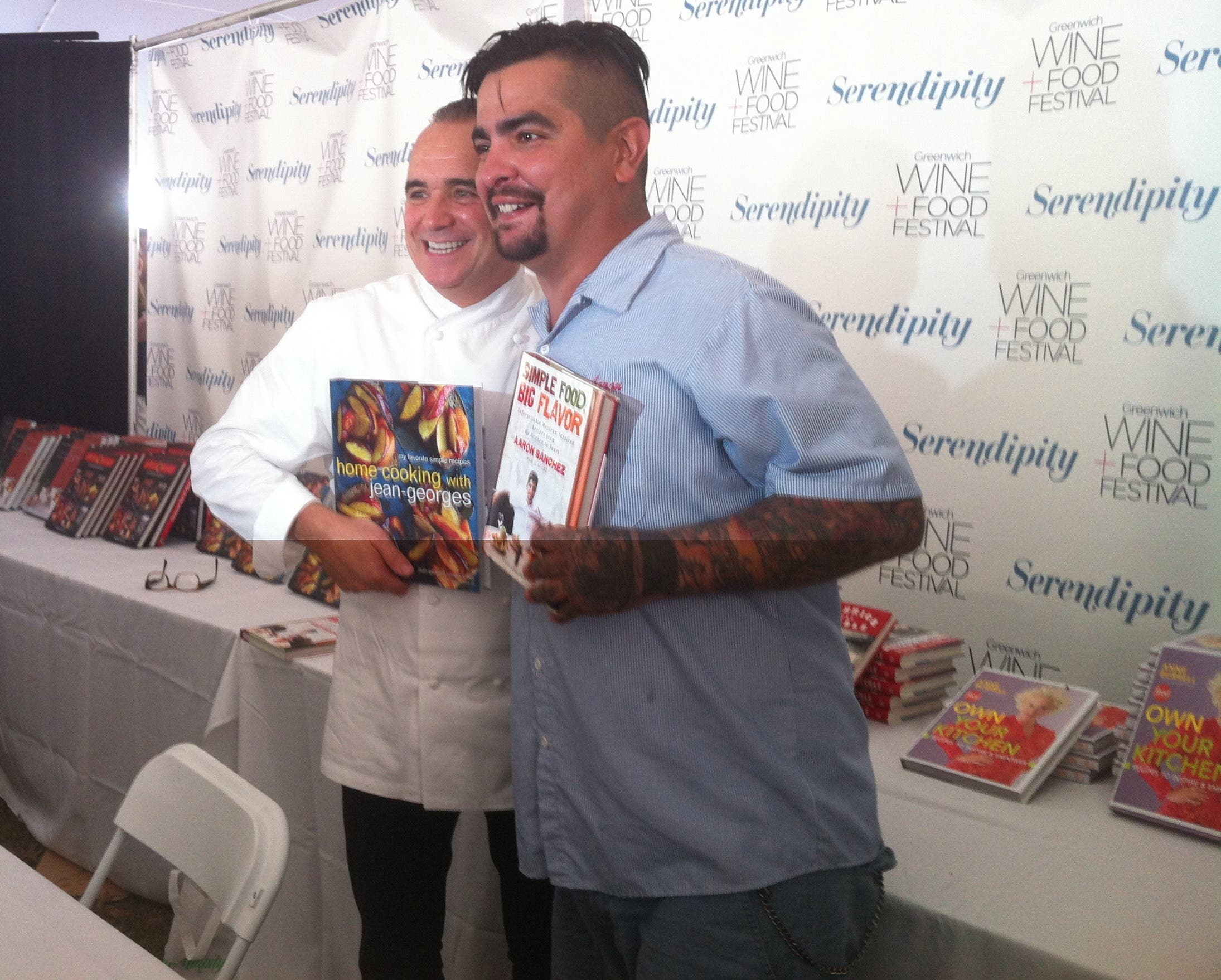 Photo: chefs Jean Georges, left, and Aaron Sanchez at the Greenwich Food + Wine Festival, Sept. 27, 2014. Credit: Barbara Heins.