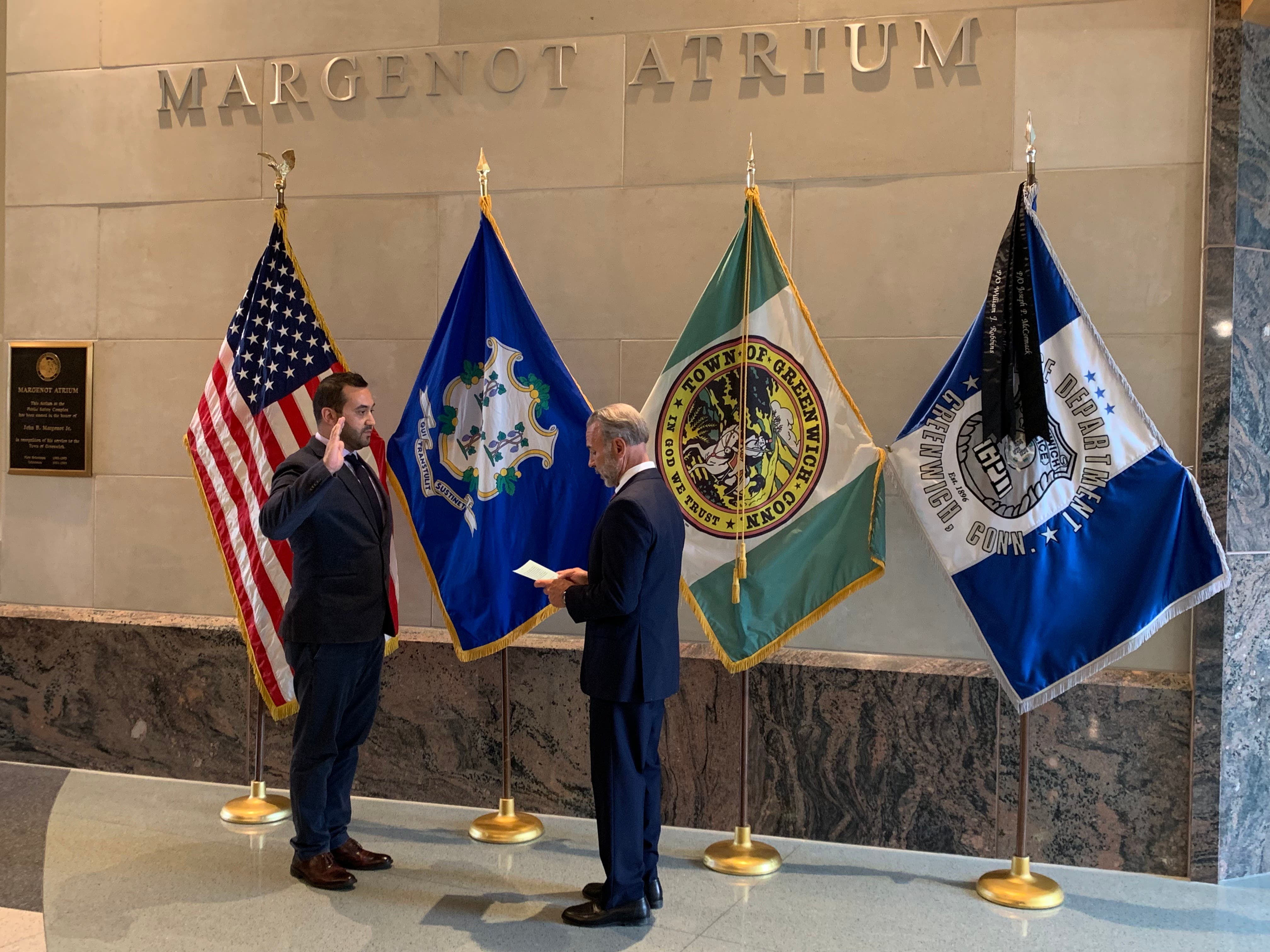 Three new officers joined the Greenwich Police Department on Monday after a brief swearing-in ceremony at police headquarters.