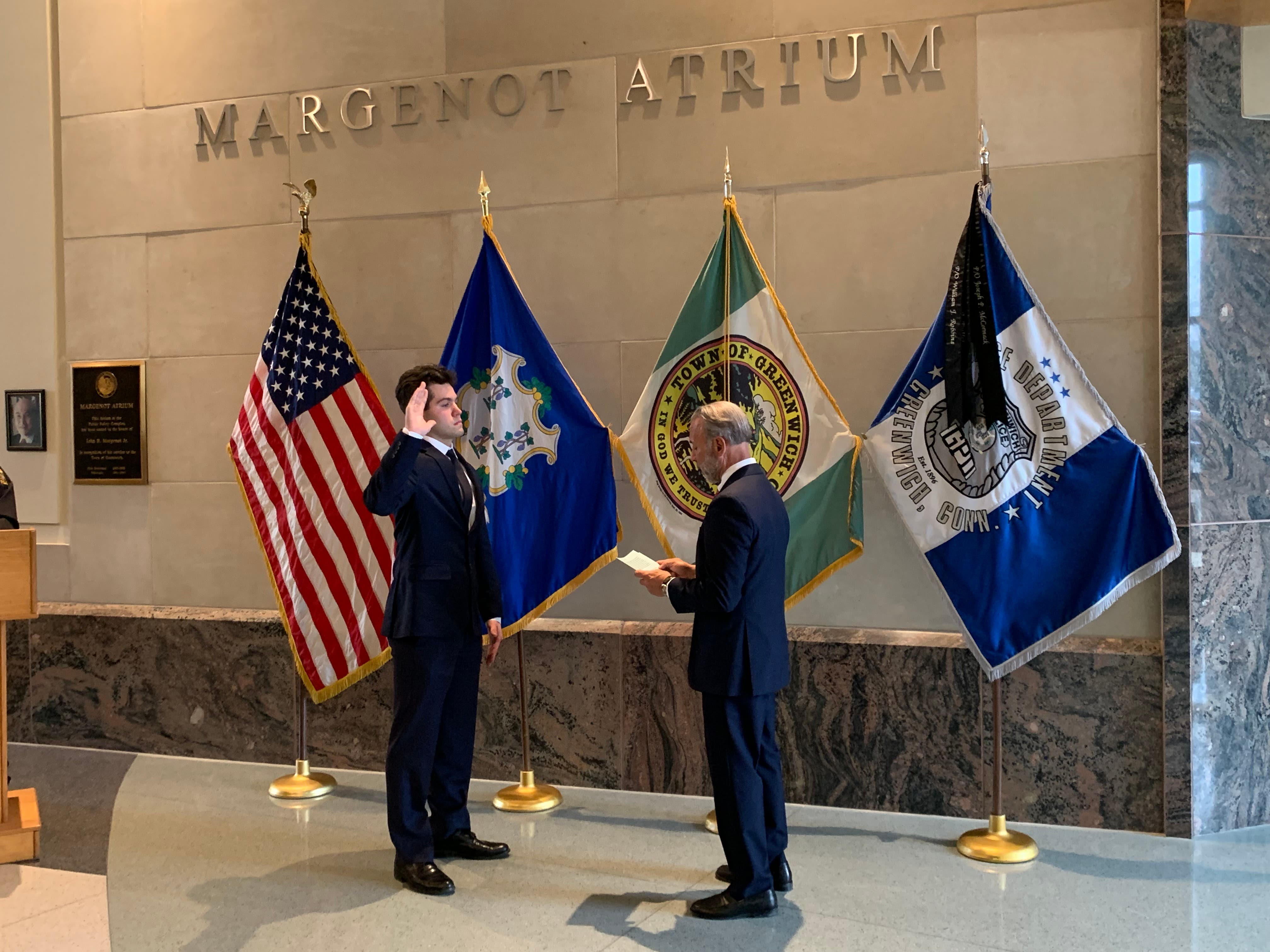 GREENWICH, CT — The Greenwich Police Department welcomed three new officers into the ranks on Monday afternoon with a swearing-in ceremony at the Public Safety Complex.