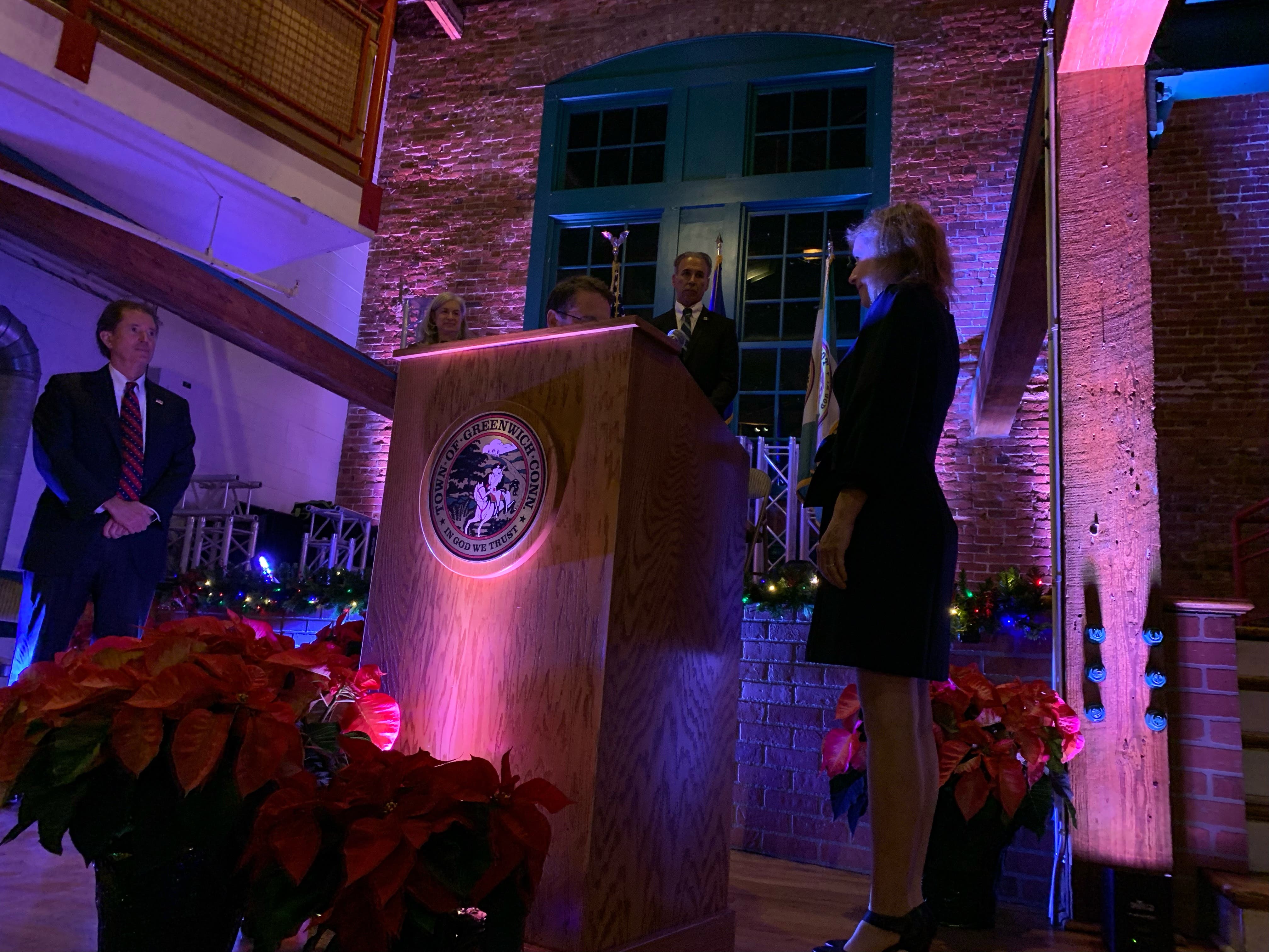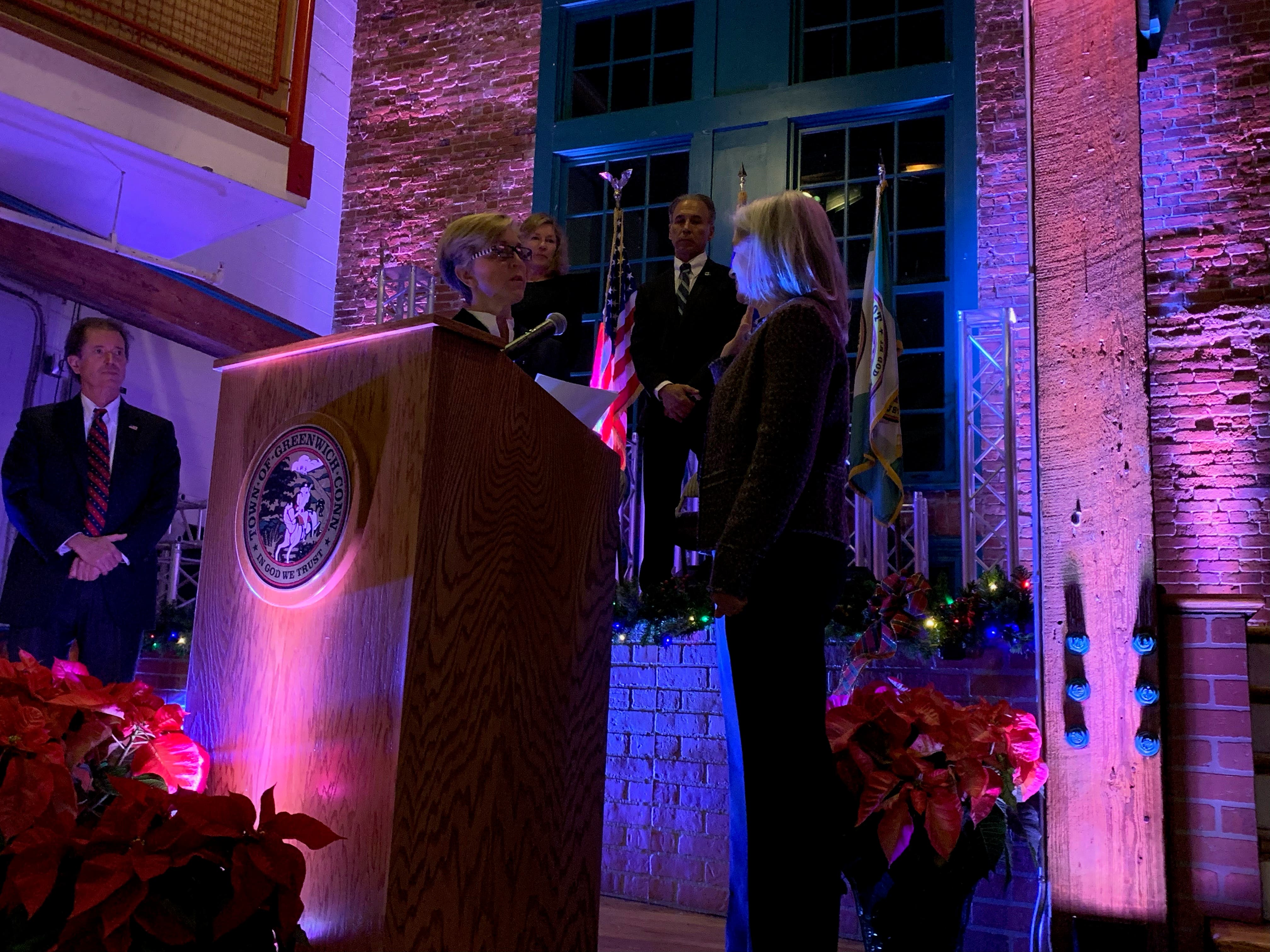Rabin was sworn-in by Rich DiPreta, the former chair of Greenwich's Republican Town Committee. Rabin said she was "grateful" to serve the town for another two years.