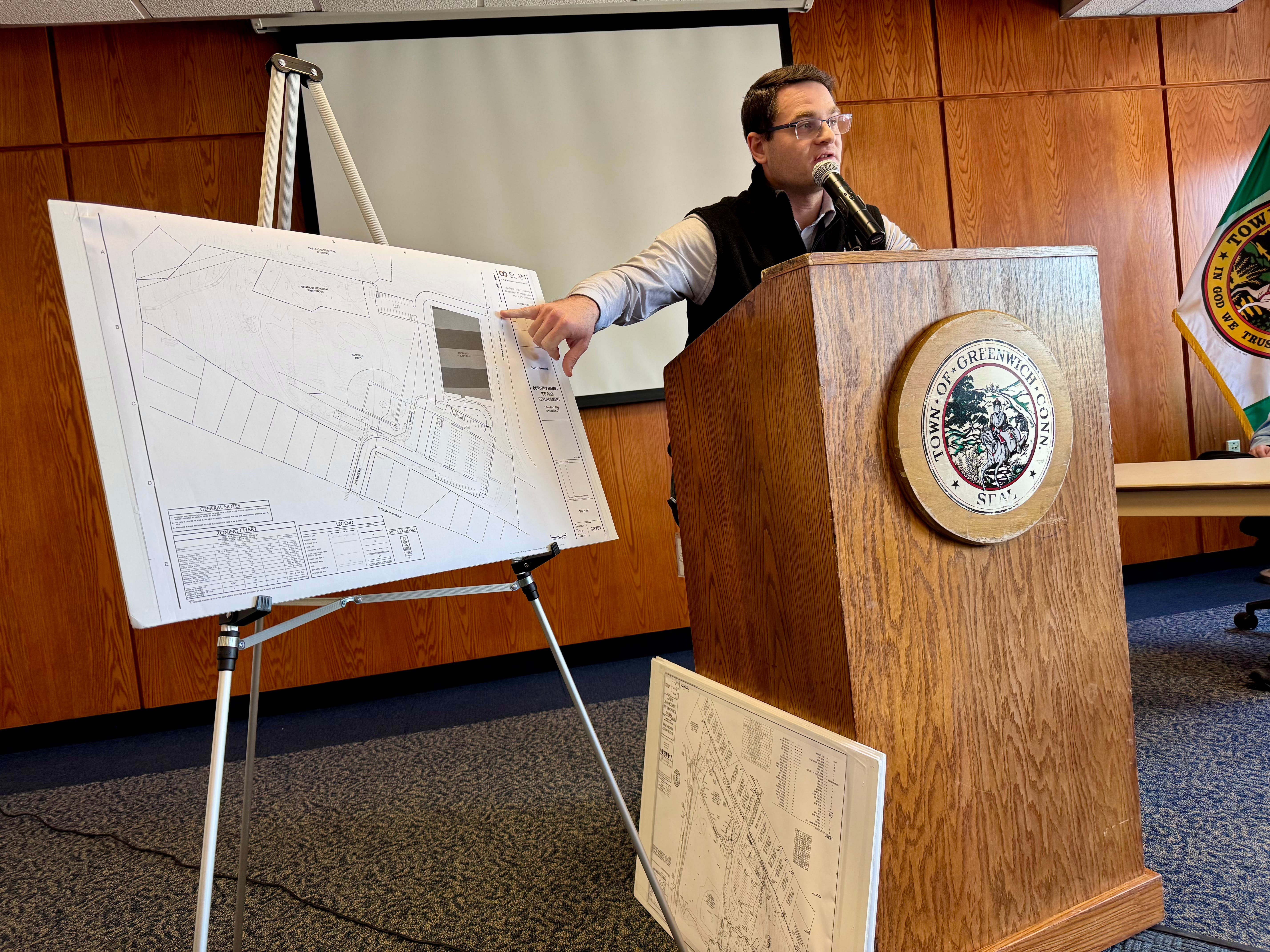 Greenwich Director of Facilities Luigi Romano appeared before the selectmen Thursday to give a brief presentation on the proposed project. The current Dorothy Hamill Rink was built in 1972 essentially as a slab of ice. It was then built up in a piecemeal fashion, leading to disrepair over the years to the point that it needs to be replaced.