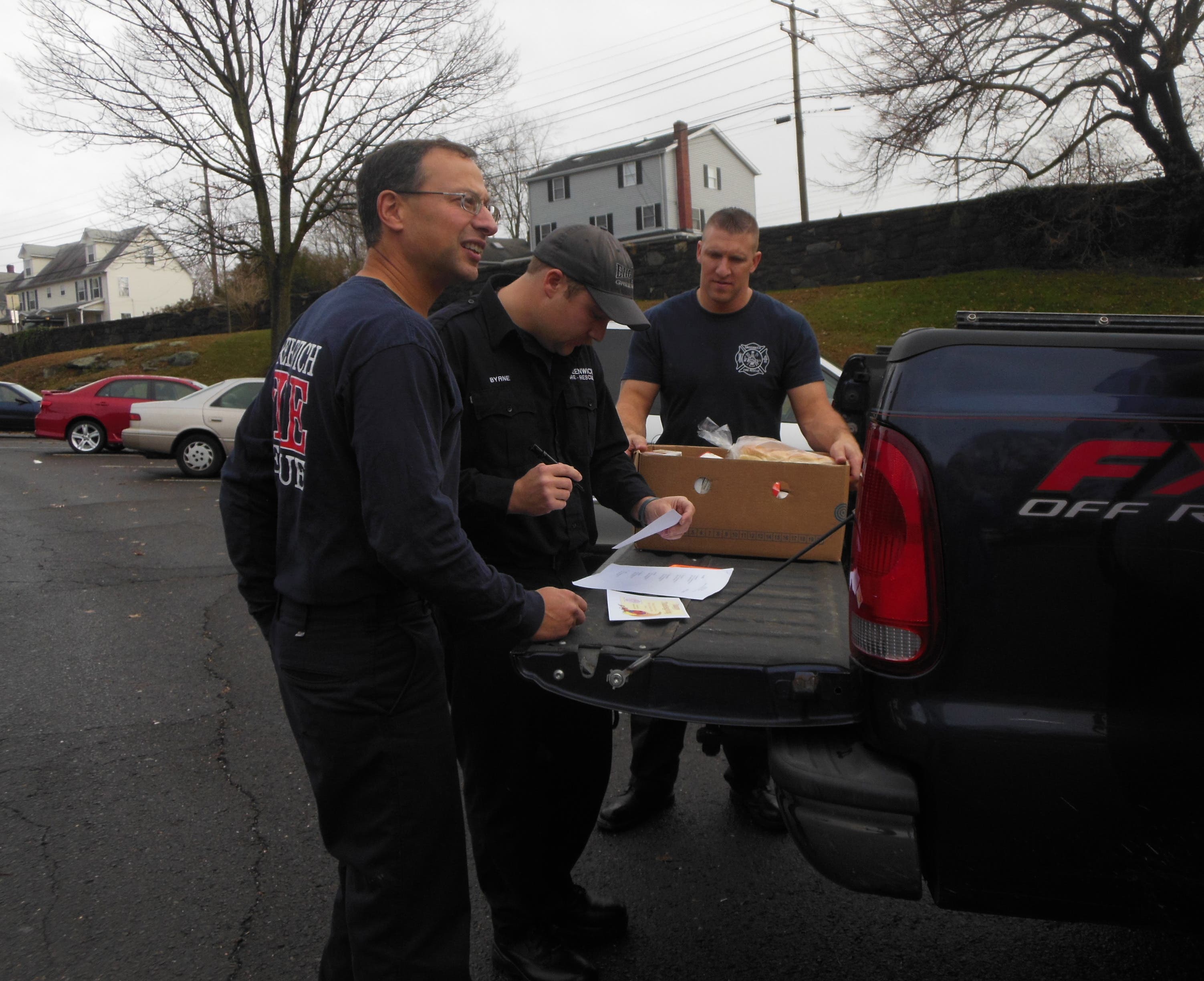 The town's bravest donate Thanksgiving dinner to Greenwich families.