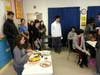 Math Club director Dr. Lisa Yin of Greenwich carved slices of cake while the students listened to International Math Olympia gold medal winner Michael Kural, his mother Allison Kural of Greenwich (currently home from MIT for spring break) answer questions about his journey through his years at the local Greenwich Schools and his future plans.