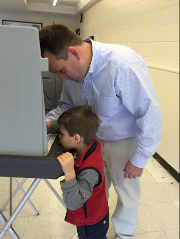 Contributed Photo: Greenwich Selectman Drew Marzullo with little Richard, vote on Election Day.