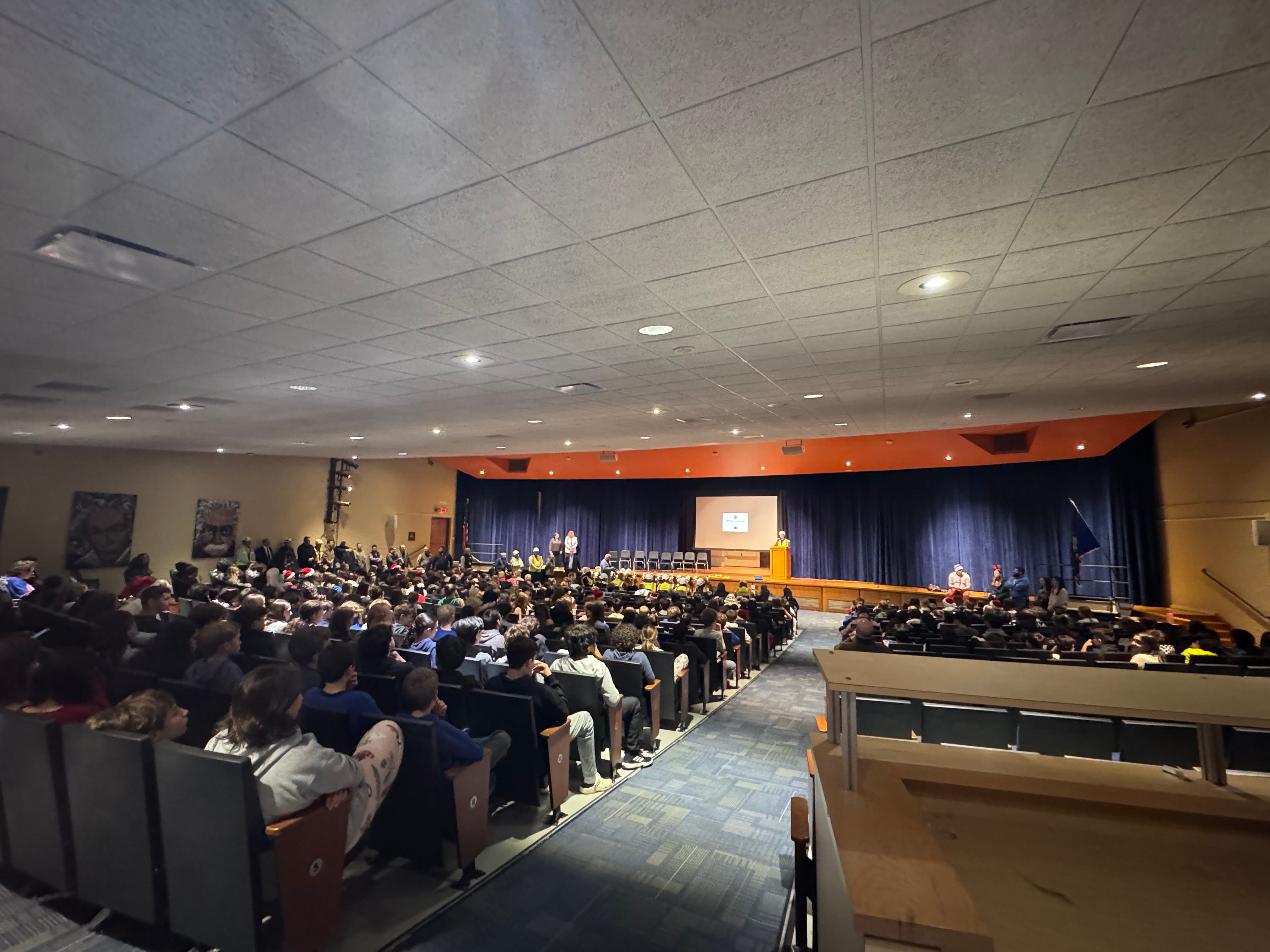 CMS Principal Tom Healy spoke to students before the groundbreaking ceremony. A former history teacher, he modeled his comments after President Abraham Lincoln's Gettysburg Address.