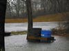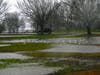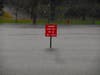 At Binney Park where the usually placid and silt-filled pond is picturesque was more of a lake swamping the entire park Tuesday afternoon. Water was lapping half-way up the poles bearing the ‘keep of the ice’ signs standing sentry at the pond’s edge.