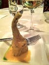 The celebrated chef Luis Bollo, imported from Spain, helmed Meigas’s kitchen for a short time and surely cast a savory spell on the place (he now runs a successful restaurant in New York), so why on a recent Thursday night were there so few people at Tinto? Service is friendly and knowledgeable, table bread and olive oil dipping sauce are fine, the ambience is pleasant enough although a tad too bright for evening dining and there seems a fair amount of attention to detail. Perhaps location is the problem. Tinto is definitely a destination restaurant, so it has to be top-notch to attract a faithful clientele.