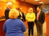 Photo 4: New Selectman John Toner speaks with First Selectman Peter Tesei and Kerrin Coyle. Credit: Barbara Heins.