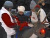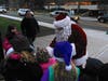 Santa was enveloped by the youngsters who eagerly accepted the candy canes he pulled from his huge red velvet sack.