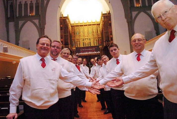 Photo: Second Congregational Church’s Just for Men Chorus provides entertainment at the 13th Valentine’s Gala for Heart Care International.