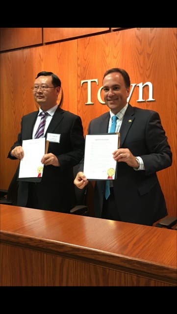 Dr. Jin described the ceremony and visit to Greenwich as "a great honor. We are here to build a friendly relationship with Greenwich. We want to promote the business and actions of the people of each city and hope that Greenwich businesses will visit our district."