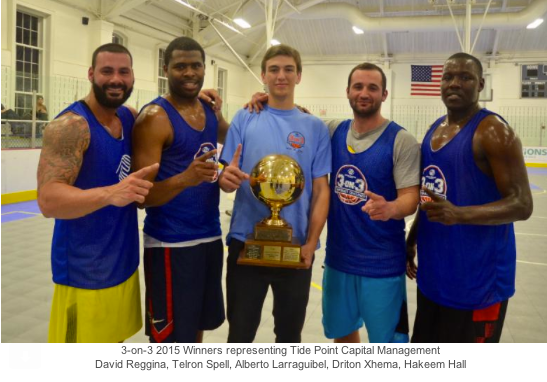 The winner was Team Tide Point Capital Management, the 15-10 winners over runner-ups Team Basepoint Capital. Representing Tide Point Capital Management were David Reggina, Telron Spell, Alberto Larraguibel, Driton Xhema and Hakeem Hall.