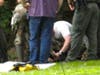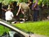 Shortly after 2:20 p.m., the faint repercussion of the tranquilizer gun being fired in a brushy area on the south side of the backyard could be heard.