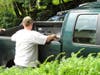 A DEEP officer has removed a colored tranquilizer gun from the team's equipment truck.