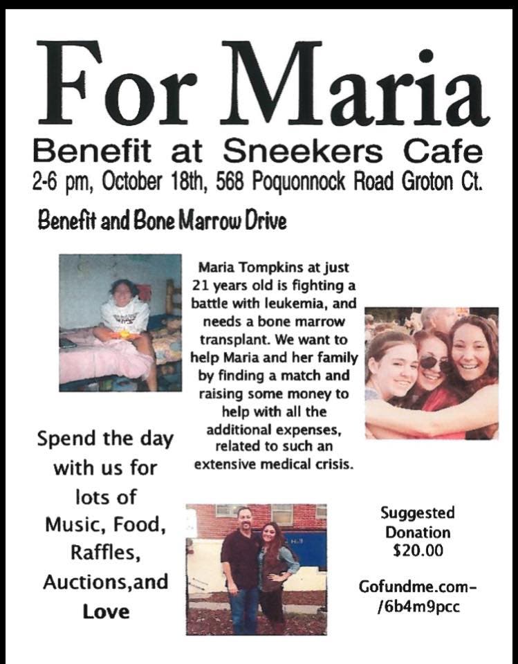 Maria Tompkins, daughter of Deputy Chief Tompkins of the Groton City Fire Department, has been diagnosed with leukemia and needs a bone marrow transplant.