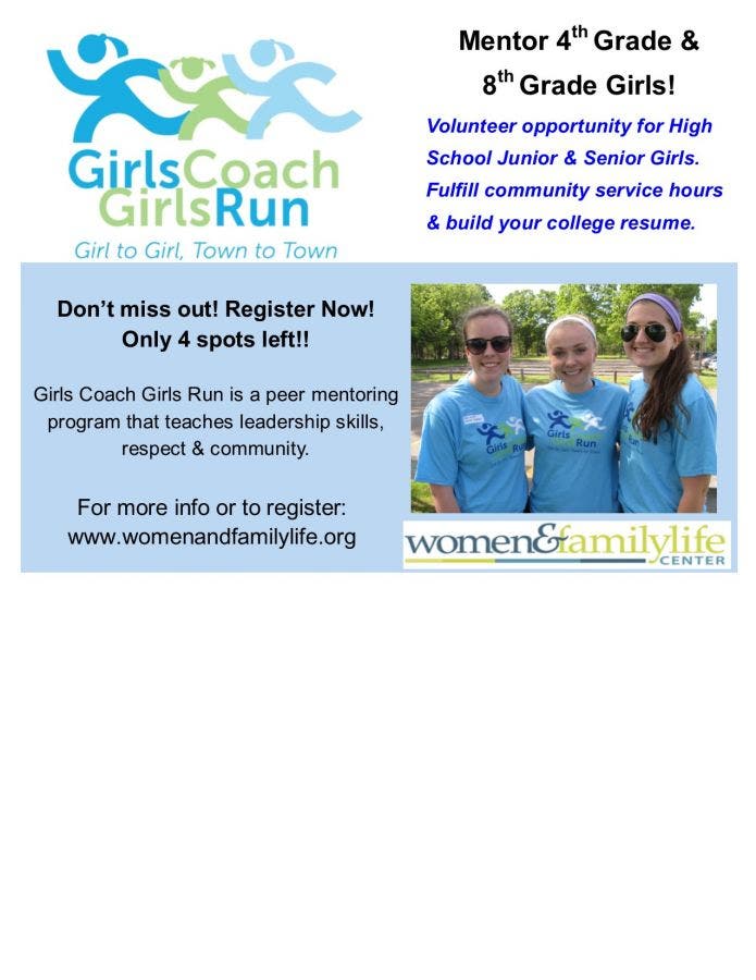 Girls Coach Girls Run - Only 4 High School openings remaining!