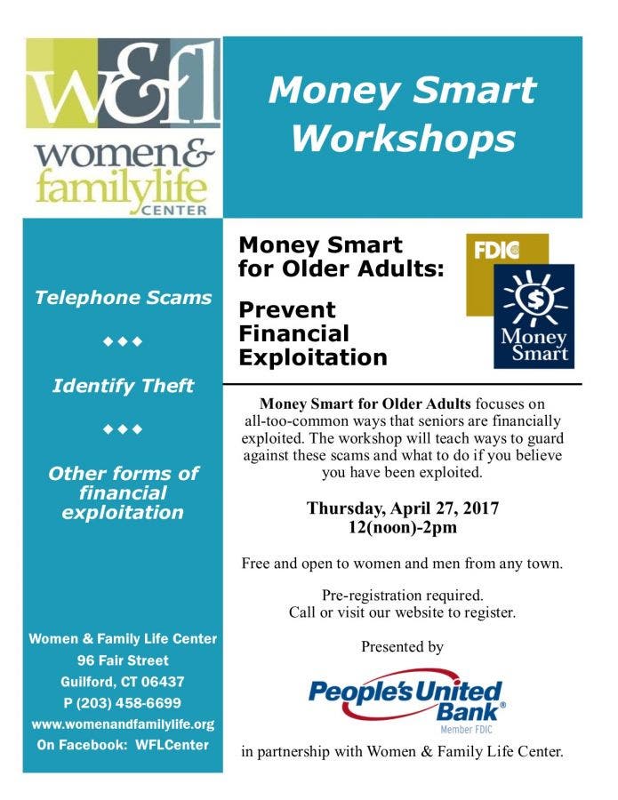Money Smart for Older Adults focuses on all-too-common ways that seniors are financially exploited. The workshop will teach you ways to guard against these scams and what to do if you believe you have been exploited. This is an important workshop if you are age 62 or over or if you have a parent or other family member who is.