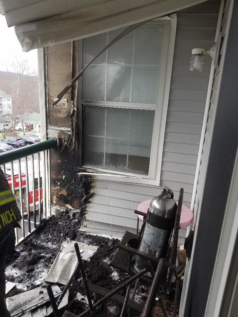 Neighbors in the apartment complex noticed a fire on a third-floor balcony and were able to alert the resident, who safely exited the apartment, according to officials. The fire was partially extinguished by the neighbors, officials said.