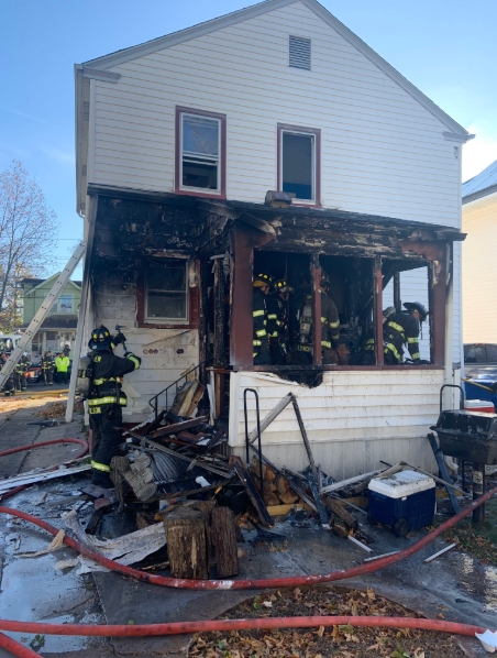 “An attack line was stretched to the rear porch that was heavily involved in fire,” Dolan wrote in a press release. “The porch fire was quickly knocked down. The fire extended into the kitchen where crews continued to put out hot spots and perform overhaul to check for any further extension.”