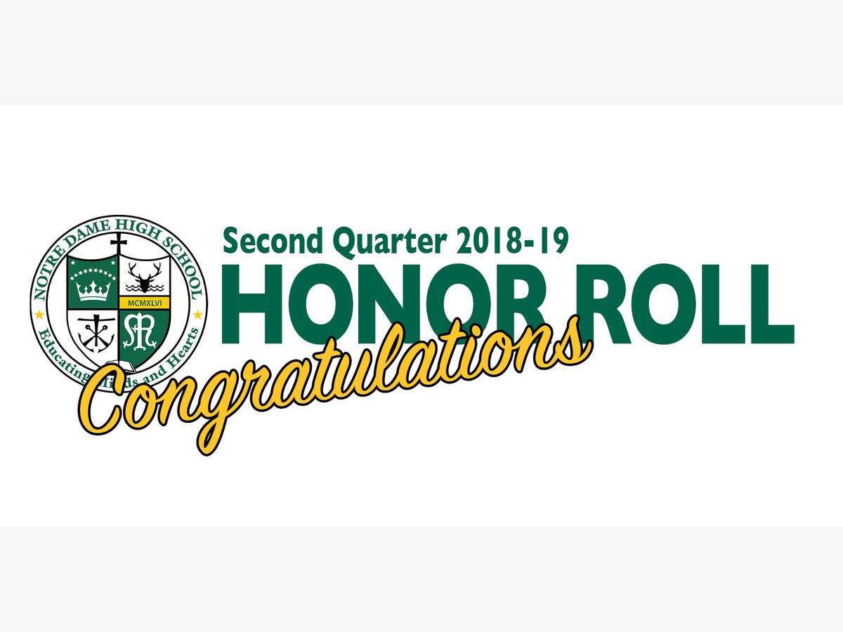 Notre Dame High School recently announced the Honor Roll for the Second Quarter of the 2018–19 academic year.