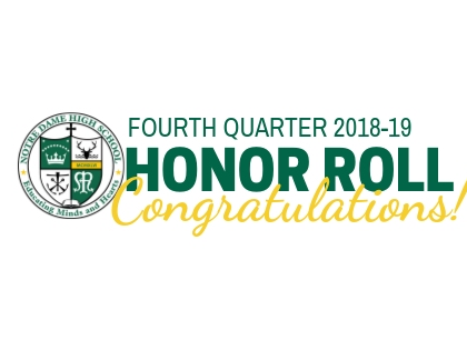 Notre Dame High School recently announced the Honor Roll for the Fourth Quarter of the 2018–19 academic year.