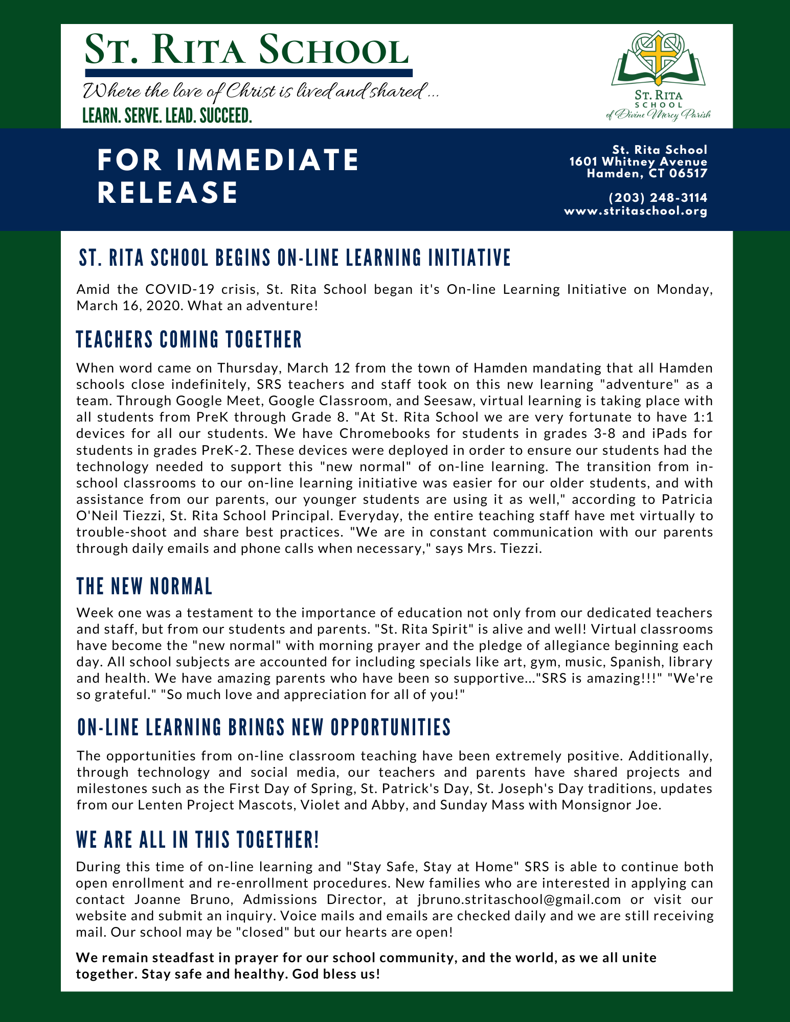 St. Rita School Gets an "A" for Their On-Line Learning Initiative
