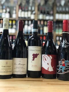 • Gamay from Beaujolais. Due to the lean nature of Beaujolais, some of its flavors can remain relatively muted when served without any chill. 15-20 minutes in the refrigerator, and the fresh, sour cherry characteristics of Beaujolais and the Gamay grape are allowed to shine! We have two picks in this category. First is this Moulin A Vent from Le Meurger that on it's own is light as a feather with those earthy tart cherry notes, soft tannins. Great sipper. Then from the region of Saint-Pourçain ( halfway between Loire and Auvergne) is a Gamay and Pinot Noir sipper called La Ficelle de Saint-Pourçain. If you have not tried this elegant red then now is the perfect time when that Fahrenheit starts to go up.