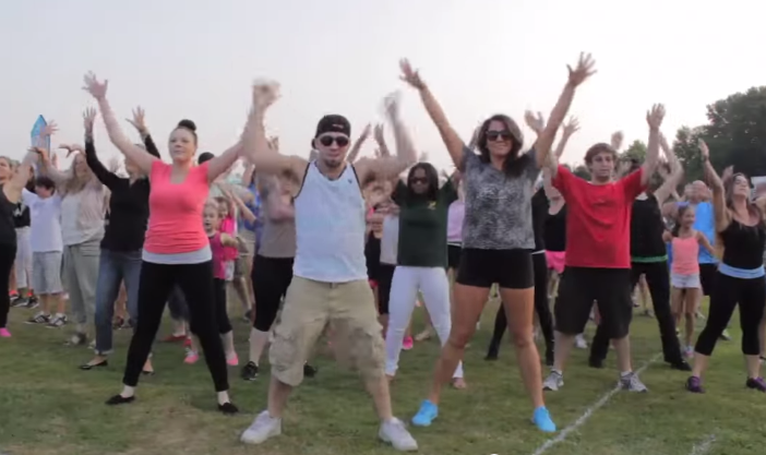 A flash mob featuring 110 community members of all ages, and mostly nonprofessionals, performed the song.