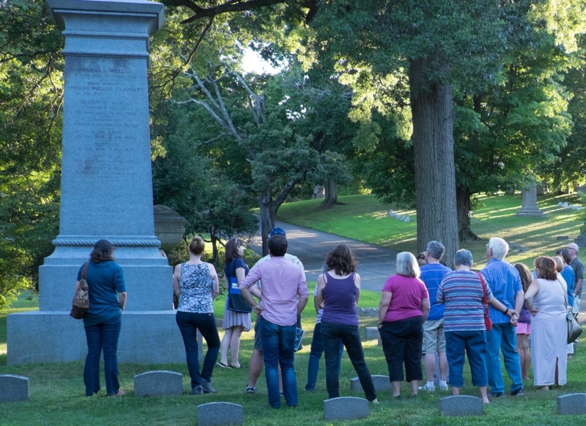 Discover the history and beauty of Cedar Hill Cemetery on this walking tour showcasing some of the most celebrated residents and renowned monuments. Stops include General Griffin Stedman, Gilbert Heublein, John Pierpont Morgan and Katharine Hepburn. Participants will enjoy watching the sun set over Cedar Mountain during the walk.