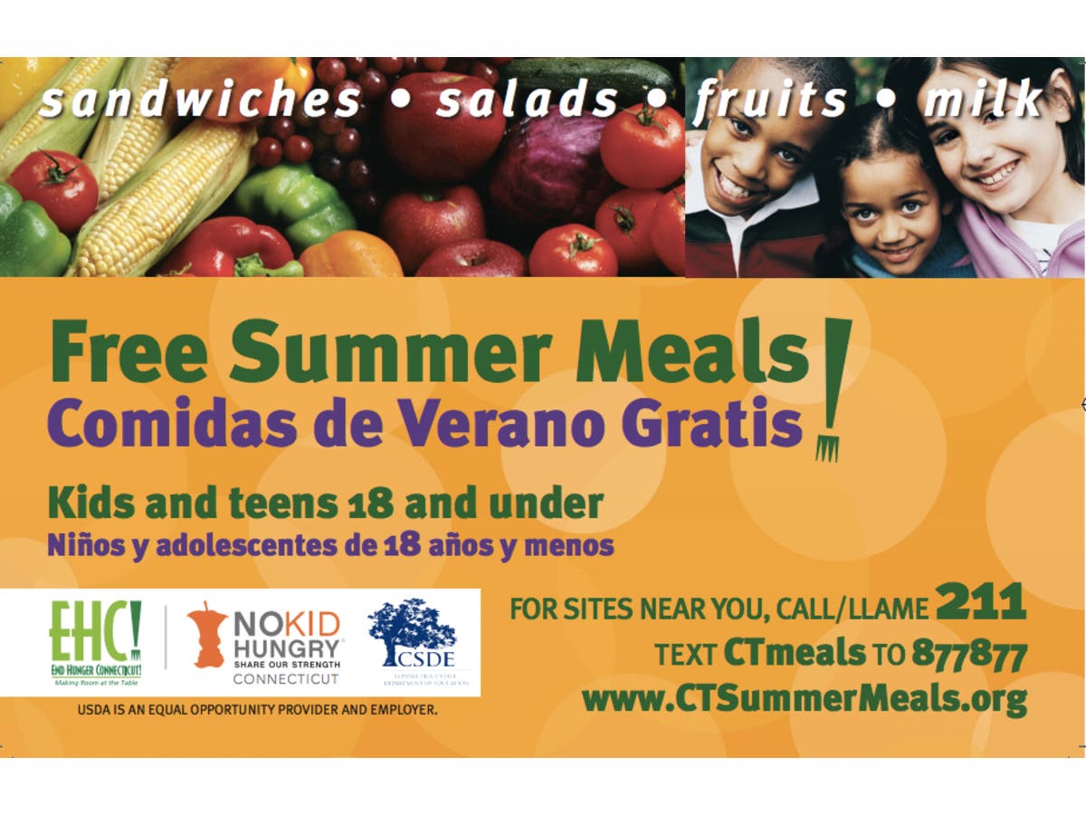 FREE Summer Meals are available throughout CT for children 18 or younger, usually offered through the local schools or nonprofit organizations.