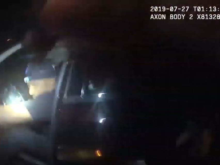 One officer can be heard shouting, "He's got my gun," during the struggle.