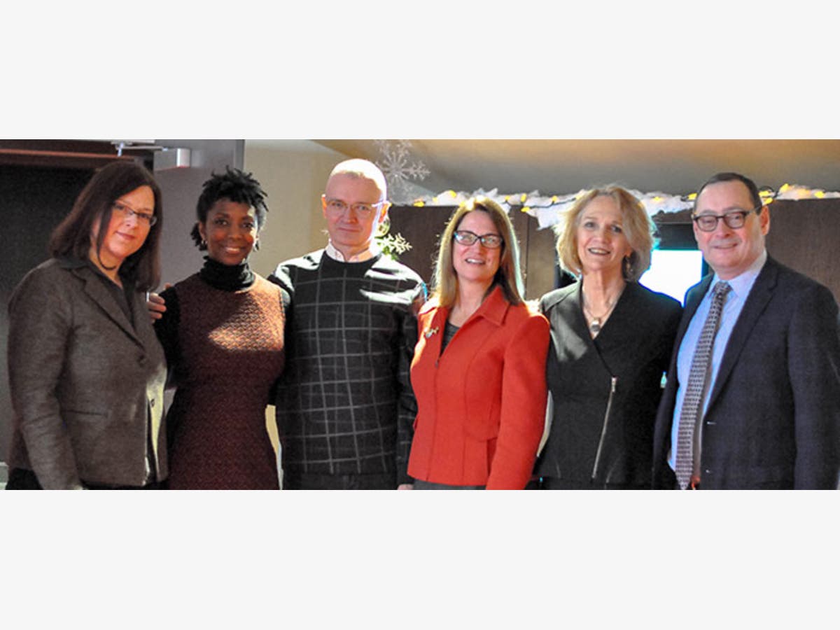 Pictured: (L-R): Elizabeth Williamson, Associate Artistic Director, Hartford Stage; Sharon Washington, Writer and Performer of Feeding the Dragon; Darko Tresnjak, Artistic Director, Hartford Stage; Bridget Quinn-Carey, Chief Executive Officer, Hartford Public Library; Margaret Patricelli, The Robert and Margaret Patricelli Family Foundation; Michael Stotts, Managing Director, Hartford Stage.