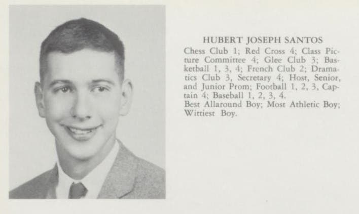 Santos was a 1962 graduate of Enfield High School, where he was voted, among other distinctions, as "best boy" and "most athletic."