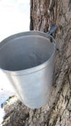 I talked to Trish Bureau at Bureau’s Sugarhouse in Old Lyme, and they have put four hundred buckets up and have collected 100 gallons of sap. When asked her advice for someone who wants to try tapping a few trees she cautioned against cooking the sap down indoors. It takes many hours to boil the sap down, and it is easy for it to boil over, steam off wallpaper, and otherwise make trouble.