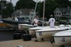 "I'm doing repairs so I can take it out and race it this weekend," he said, flashing a big smile. When pressed, he said his optimism about the direction of the storm might not last and that he too might move his boat.