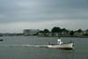 While they were talking, Dan Lyons, a junior at Daniel Hand High School, was running the launch, taking boat owners out to their boats so they could bring them in. When asked what he thought, he said, "it's up to the invidual person, but they really should have them out of the water."
