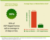 - Staging Will Continue To Sell Homes Faster. Staged homes will always have an advantage and are selling even faster than before. Nationally, homes staged by an Accredited Staging Professional are receiving offers in 23 days or less. A home just staged last week by PJ & Company sold in just one day, while two others went to contract in just 3 days.