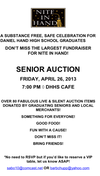 GOOD NEWS! We have good news for everyone! If you're in business, NITE IN HAND has the perfect publicity plan for you! DONATE TO NITE IN HAND SENIOR AUCTION! Think about it. It's great public relations and fabulous visibility for your products and/or services. There's no catch! WHY DONATE? **NO DONATION IS TOO SMALL! **NO DONATION IS TOO BIG! **EVERY DONATION IS JUST RIGHT! **Name recognition **Customers love to support businesses who support our local youth programs! **Nite in Hand is a substance free event! **This is Nite in Hand's biggest fundraiser! **This event is right here in Madison. **Your name or business will benefit from local media coverage. **You'll feel good by doing good. We have donations that run the gamut.... signed artwork, small business goods and services, babysitters, landscapers, a sunset cruise, tickets to shows, jewelry, golf outings, gardening, tickets to wine tastings....and so much more. Be creative! Offer a class of training in what you know best! If you have coached or still play a sport, donate lessons or training...for an afternoon or an hour. Golf? Lacrosse? Football? Baseball? Running? Sailing? Offer your professional services... Accounting? Landscaping? Gardening? Skin care? Art? Housecleaning? Massage? Dry cleaning? Car service? Organize a closet? Share your gifts and talents... Singing lessons? Piano lessons? Photography lessons? Art lessons? Take family photos? Dance lessons? Writing coach? Baking cakes? Cooking classes? Hair stylist? Deliver groceries? Walk dogs? Babysit? Give wake up calls for a month? Wash a car? Cat sit? We make a living by what we get. We make a life by what we give. _Winston Churchill For any donations, please contact: sabo10@comcast.net barbchupp@yahoo.com