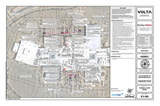 Volta Inc., a national electric vehicle charging and media company has teamed up with the national design firm Kimley-Horn for the project, according to the plans.