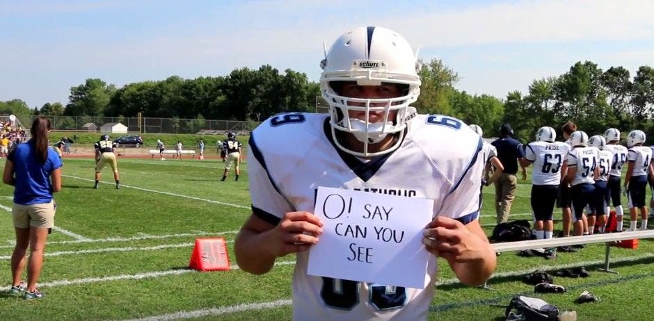 The video entitled, "Rise for the Anthem," was created at a recent football game.