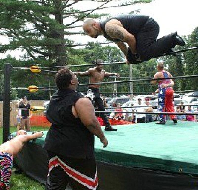 "We don't have an intermission – we have a halftime, with an artist known as Menace performing," Ortiz said. "There is also a Fan Hour before the show, with vendors selling sports and wrestling memorabilia, MMA gear from an Enfield company called Need 2 Bleed, and autograph signings by former ECW star Raven, former TNA star Amazing Red, and former WWE star Afa Jr. (Manu)."