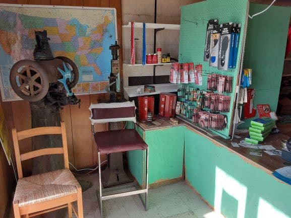 Welcome to the Country Cobbler. The business is tucked into a shopping plaza at 63 Tolland Turnpke in Manchester close to the Vernon line. It's a walk back in time but also a viable solution to fix the favorite footware, even in 2020.