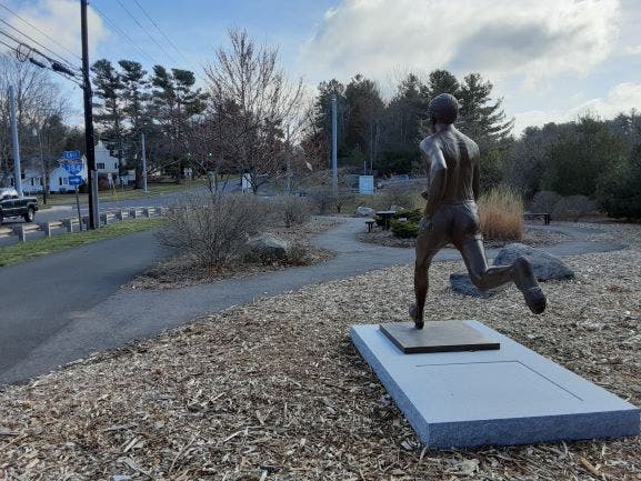 In one spot, across from Highland Park Market (317 Highland St.) stands (or runs) a statue honoring the late Olympic medalist Joe McCluskey. McCluskey, a Manchester native who graduated from Manchester High School in 1929, won the bronze medal in the 3,000-meter steeplechase at the 1932 Los Angeles Olympic Games.