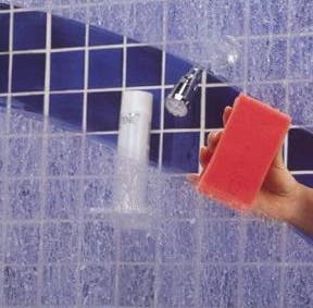 Remove shower scum as you go. A daily shower cleaner will keep shower and tub surfaces free of soap scum, mildew stains, and hard-water deposits. Enlist everyone in the household to mist the surfaces immediately after they shower, while the walls are still wet and warm.