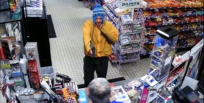 The second robbery took place at 3:21 a.m. Wednesday at the Mobil Gas Station, 427 Hartford Road, a report indicates. Surveillance footage shows a man wearing a yellow jacket and green hat with side tassels pointing a gun at a clerk. He then took cash from the establishment, according to a report.