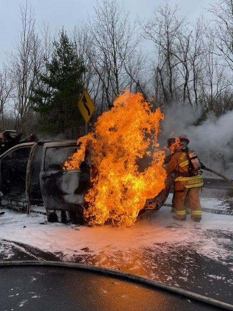 Fire crews extinguished the flames and a crew from the Connecticut Department of Energy and Environmental Protection cleaned up the fuel spill.