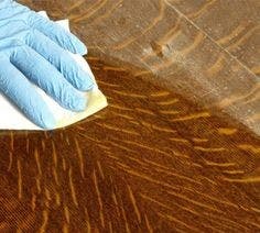 If detergent cleaning doesn’t work, use a solvent – depending on the type of finish – to clean the wood. Solvent cleaning is the last resort to consider because it may damage the finish. Use mineral spirits or turpentine on any finish and denatured alcohol on varnish or lacquer. Do not use alcohol on shellac or on a shellac/lacquer mixture. Apply the solvent with a rough cloth, such as burlap or an old towel. Then wipe the wood clean with another cloth. Finally, apply a commercial cleaner/conditioner, and buff the wood lightly.