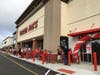 Manchester Mayor Jay Moran greeted about 50 people who were in line for the opening at 9 a.m. Store manager Jason Schwartz, who happened to be celebrating his birthday, was also outside handing out leis and rubber ducks to those in line.